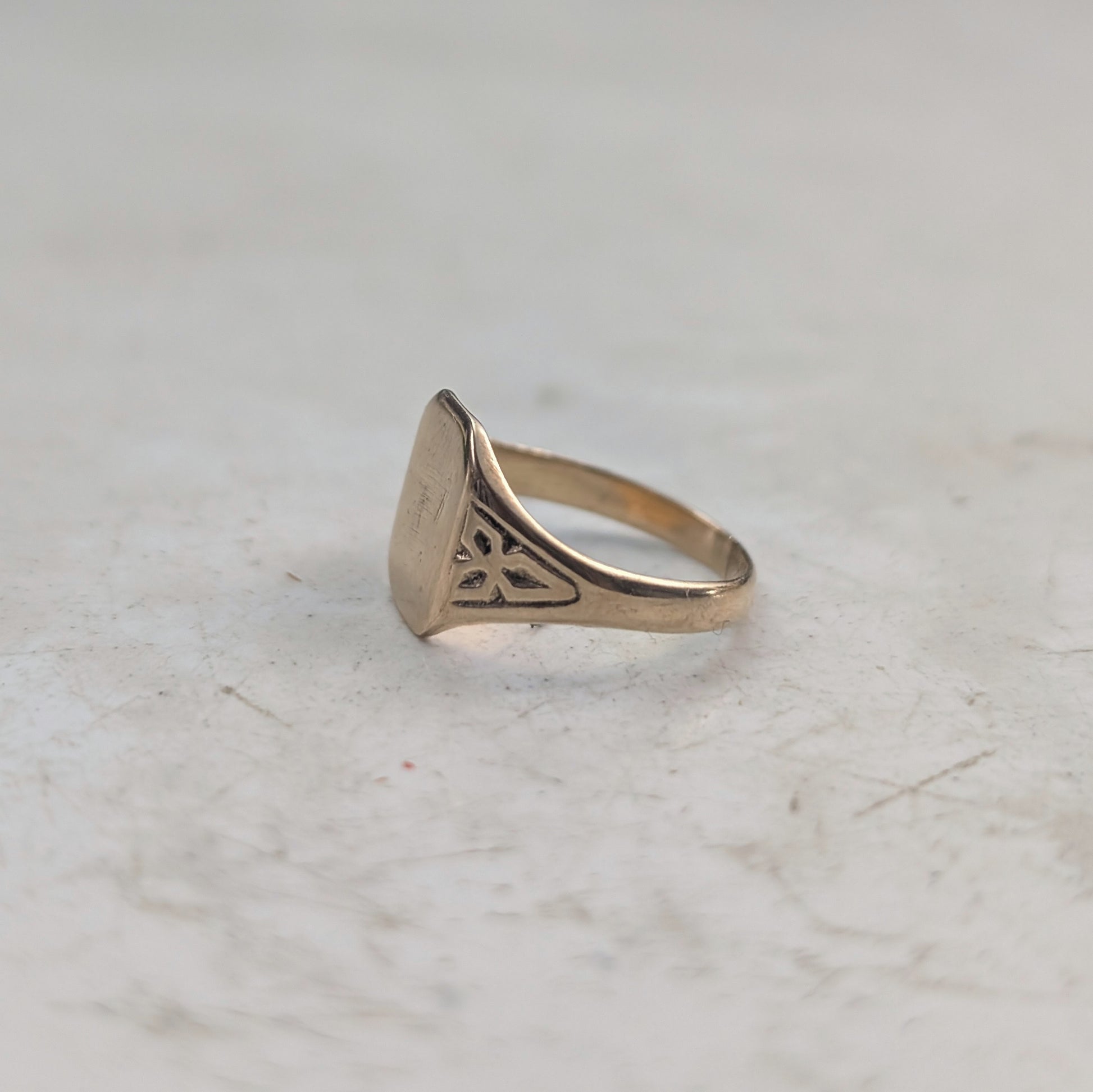 - signet ring features a rectangular face with clipped corners with no engraveing