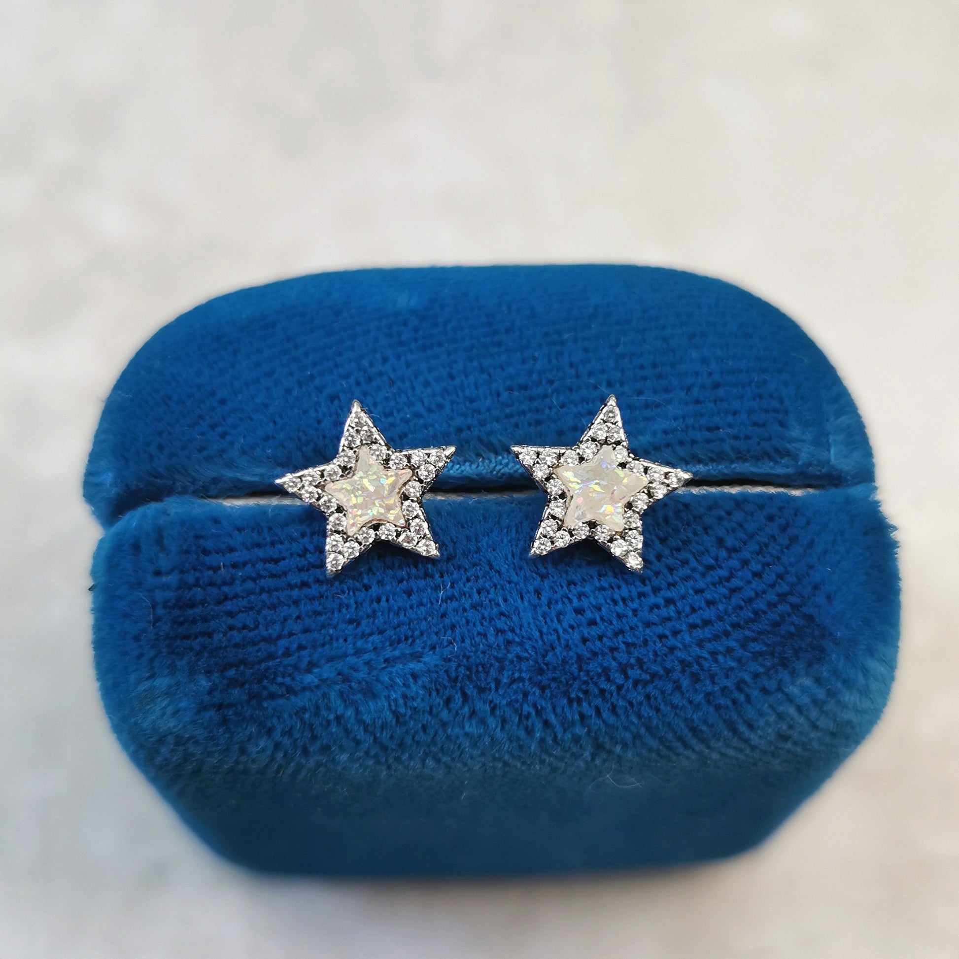 Estate Sterling Silver CZ & Faux Opal Star Stud Earrings
