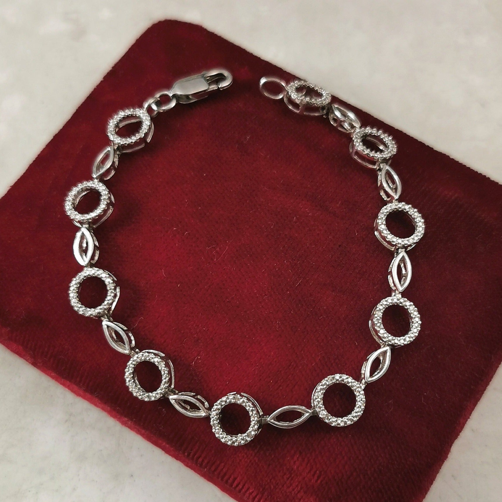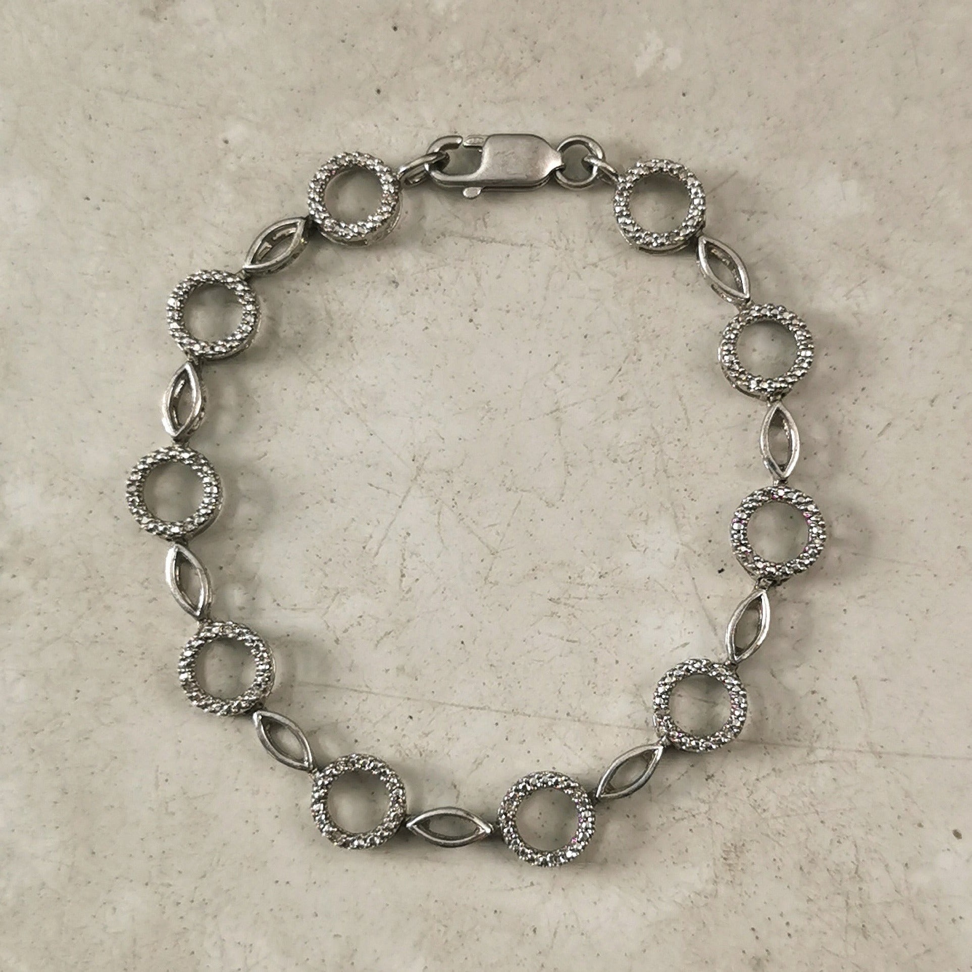 Estate Sterling Silver & Diamond Circle Link Bracelet