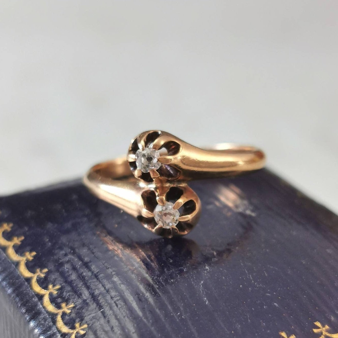Victorian 10k Yellow Gold Old Mine Cut Diamond Toi & Moi Ring