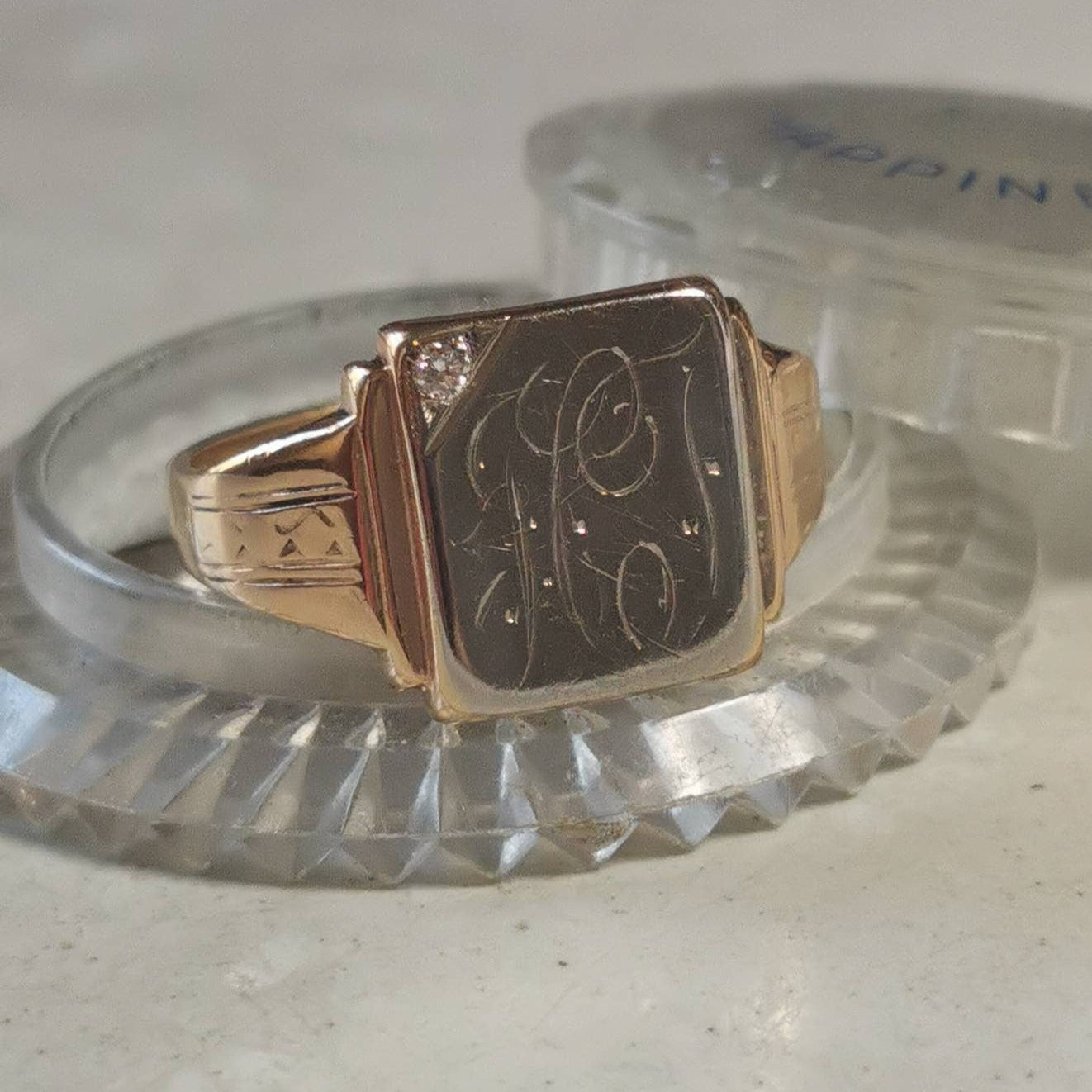 Vintage 10k Solid Gold Signet Ring with Initials HJ