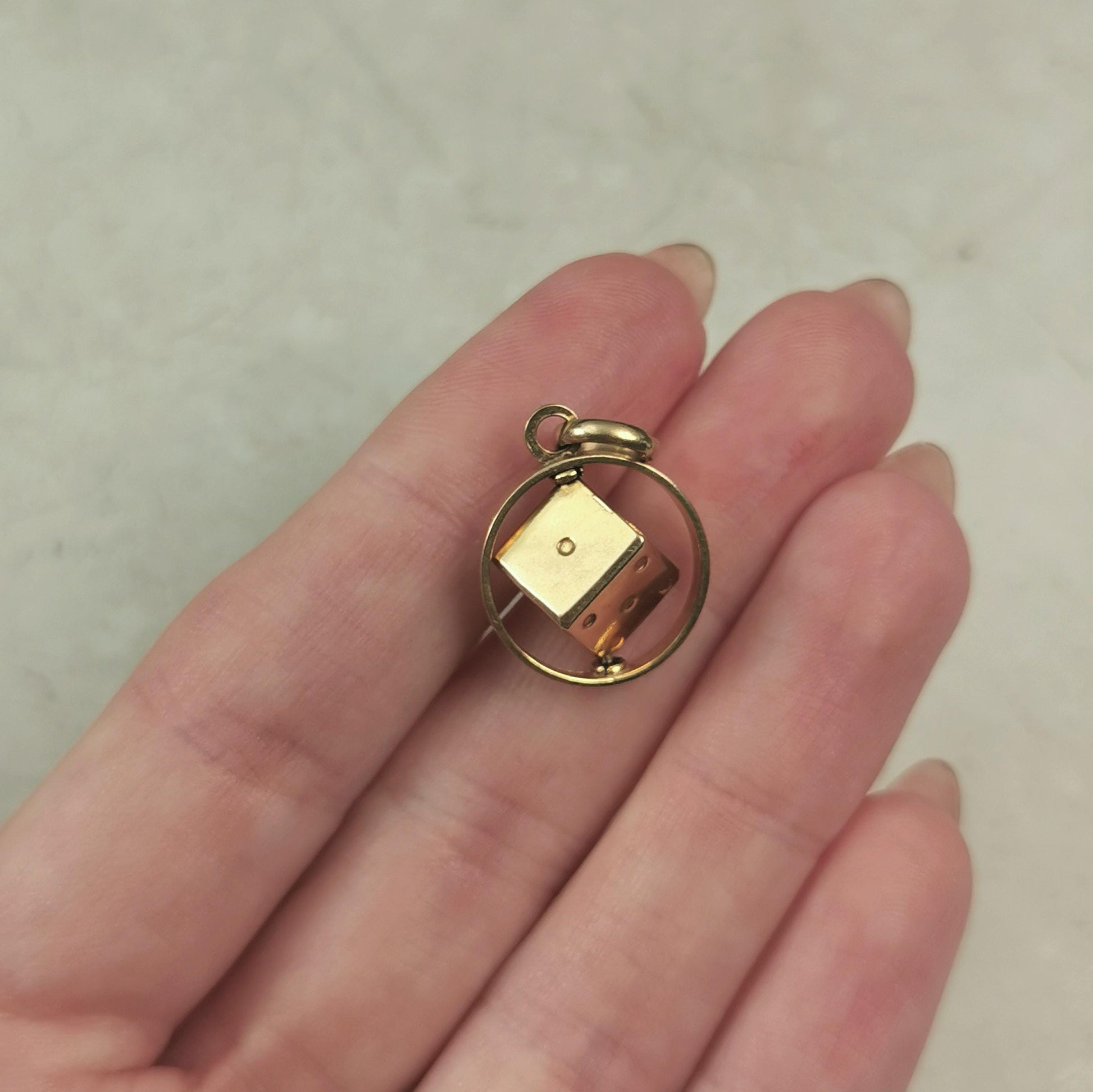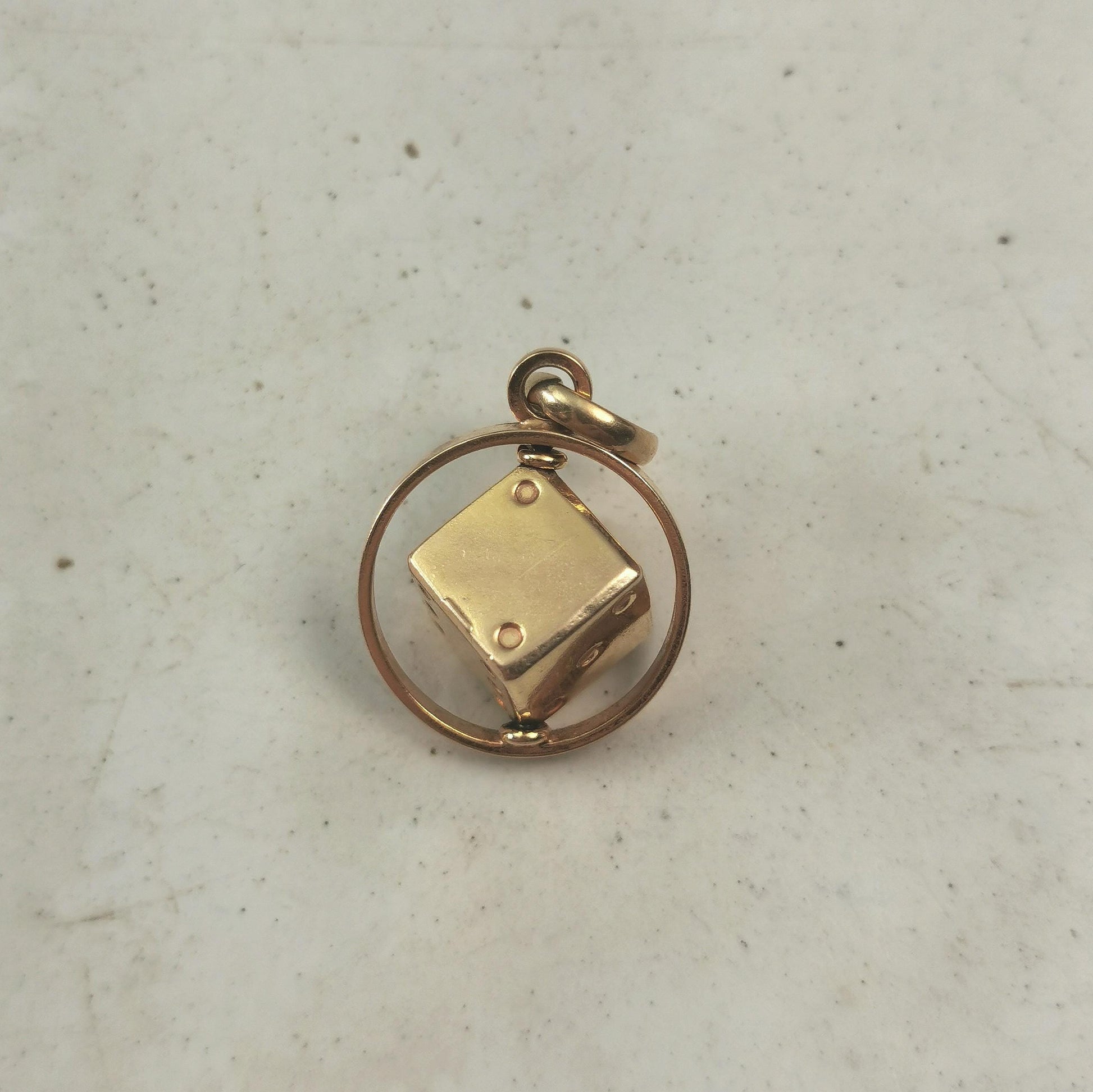 Vintage 10k Yellow Gold 3D Spinning Lucky Dice Charm