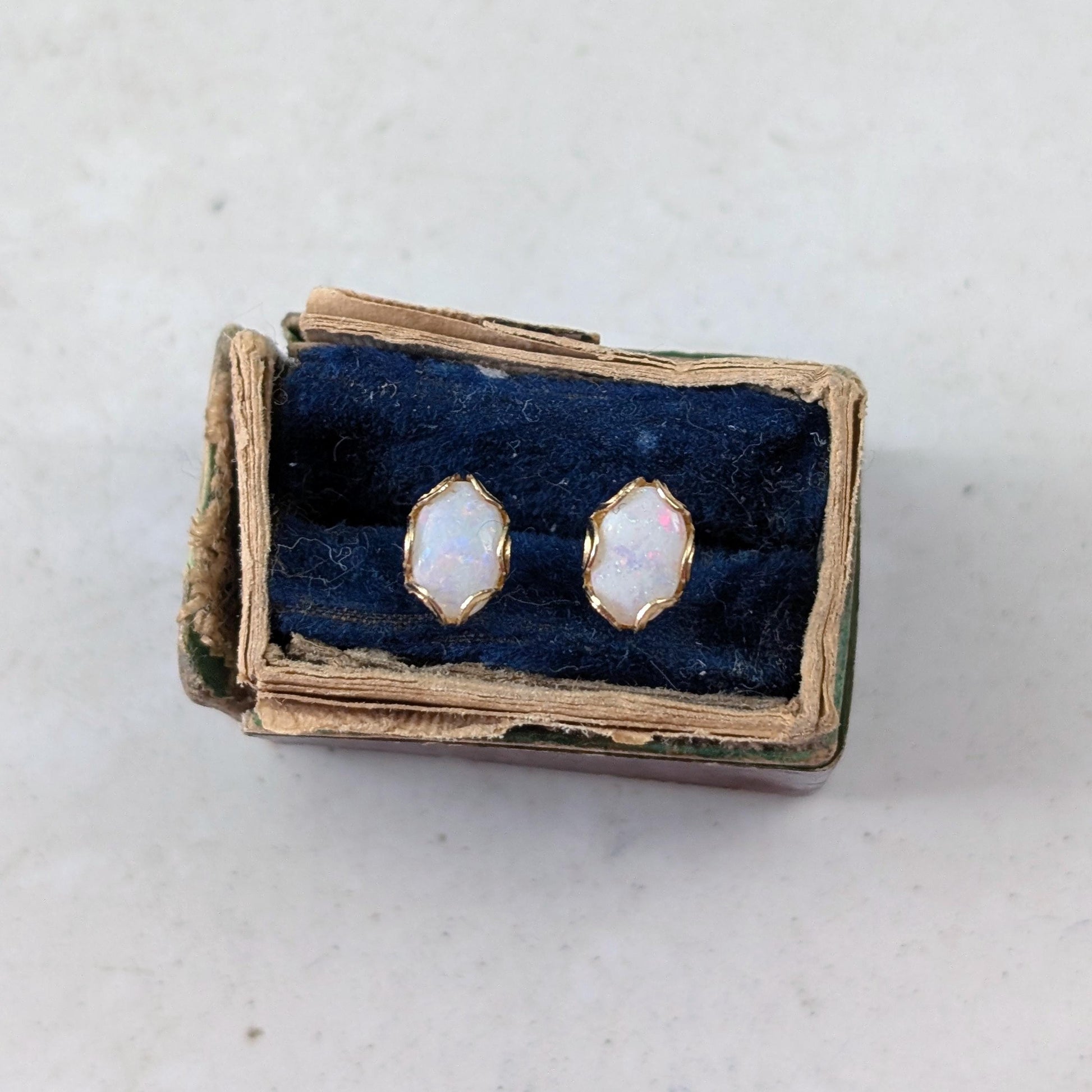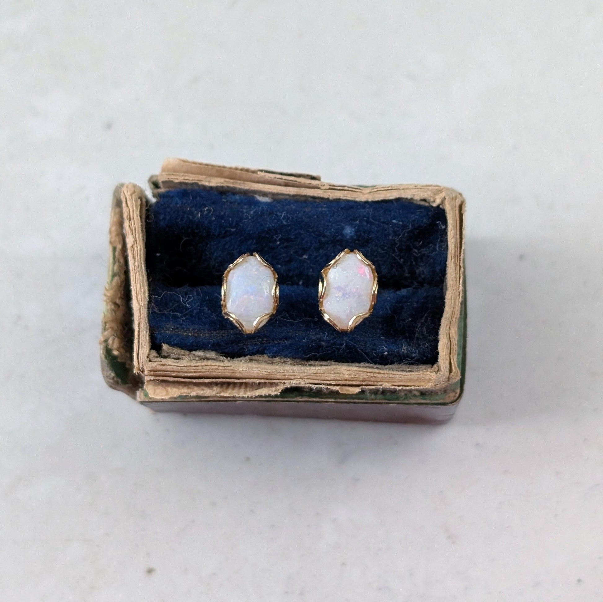 Vintage 10k Yellow Gold Small Genuine Opal Studs