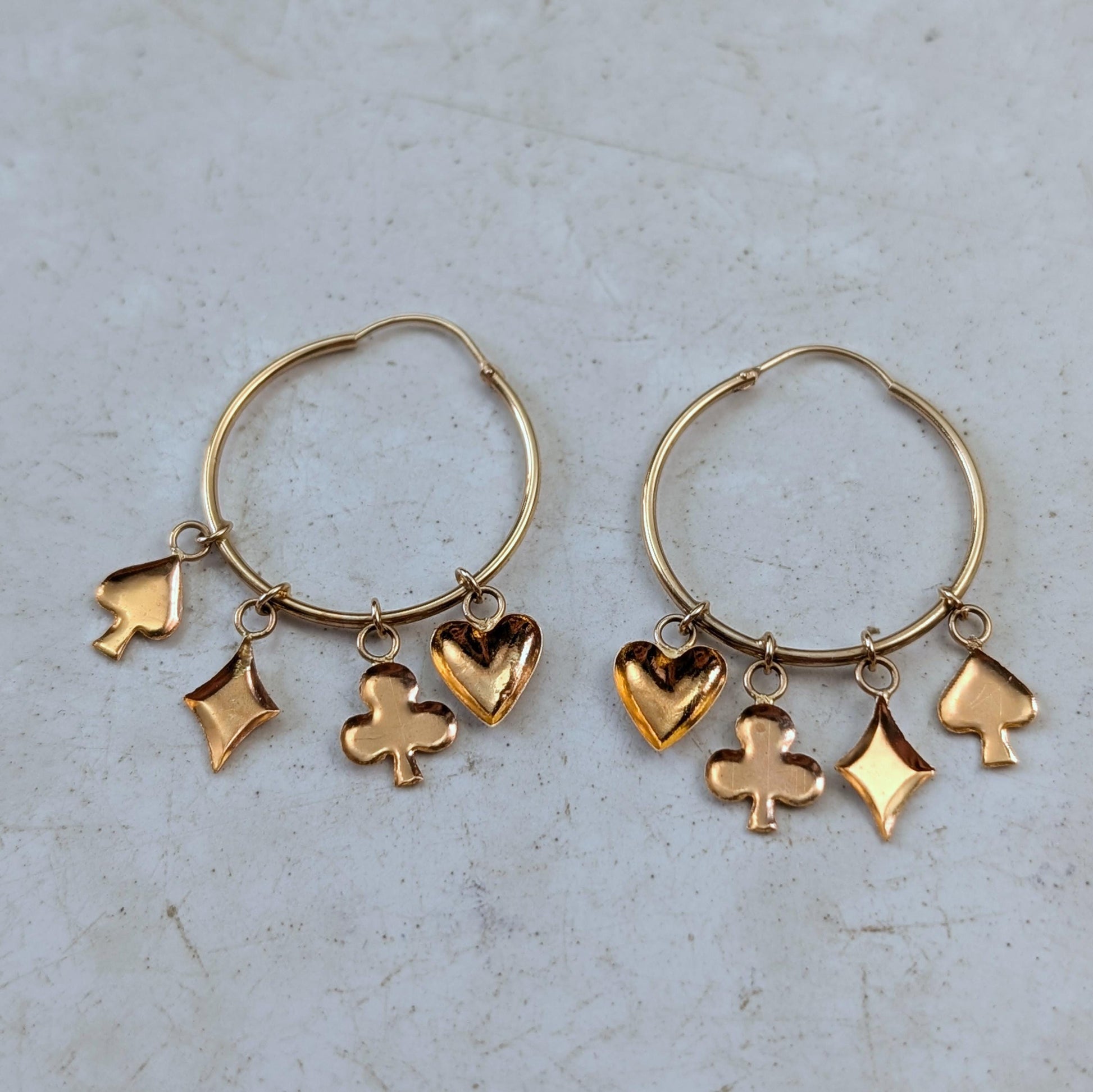 Vintage 14k Yellow Gold Suit of Cards Sleeper Hoops