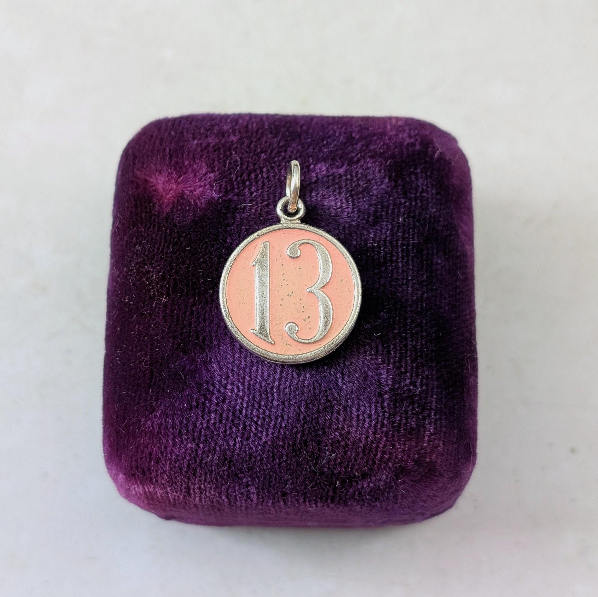 Vintage 1940's Sterling Silver & Pink Enamel Lucky Number 13 Charm