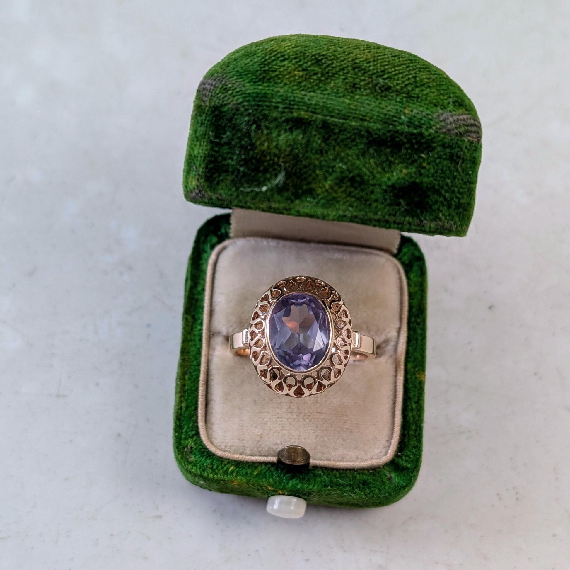 Vintage Polish 14k Yellow Gold Colour Change Alexandrite Ring