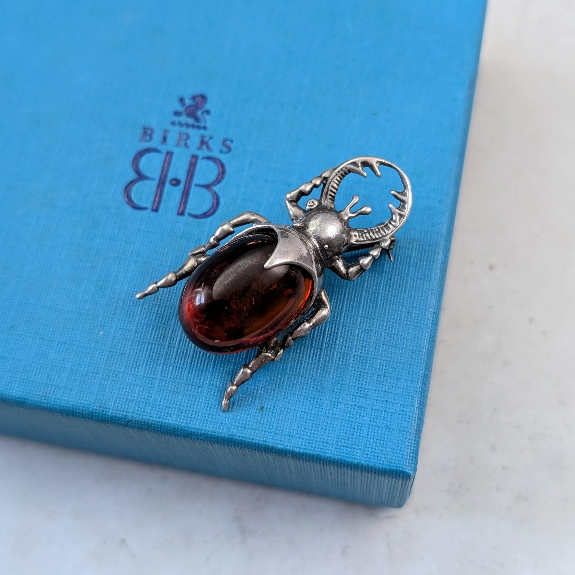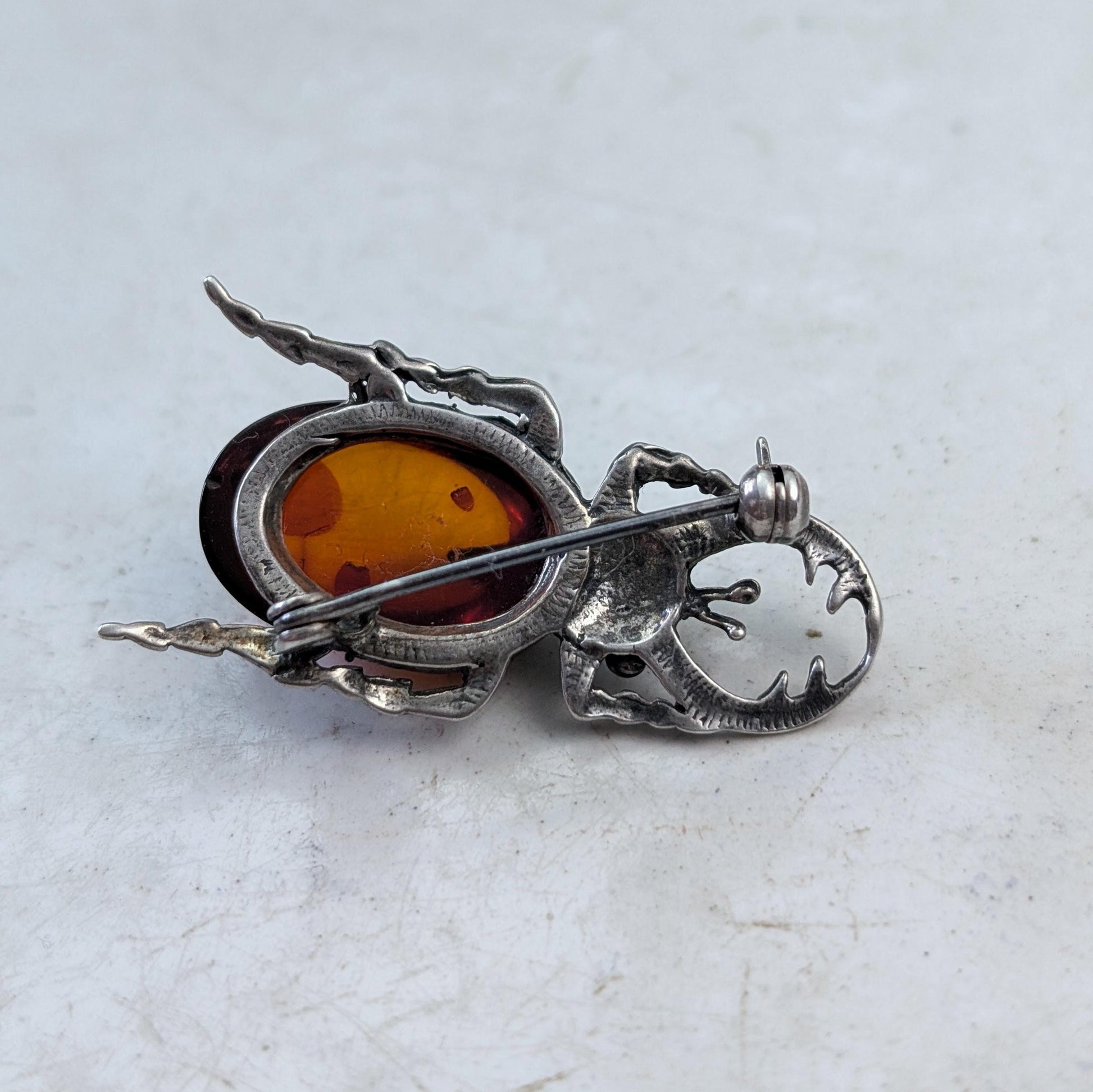 Silver and Amber Beetle Brooch