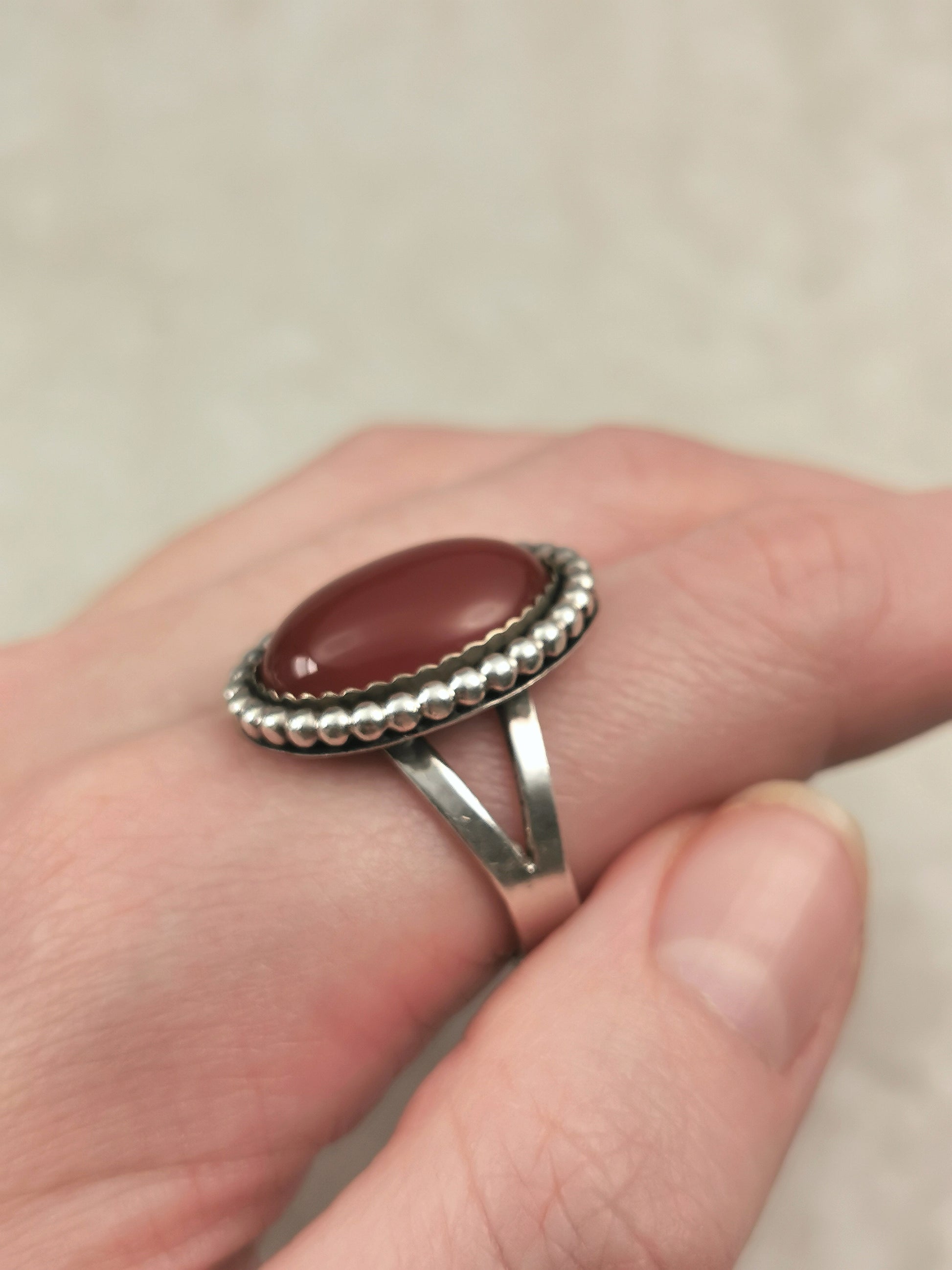 Vintage Sterling Silver Carnelian Cabochon Ring