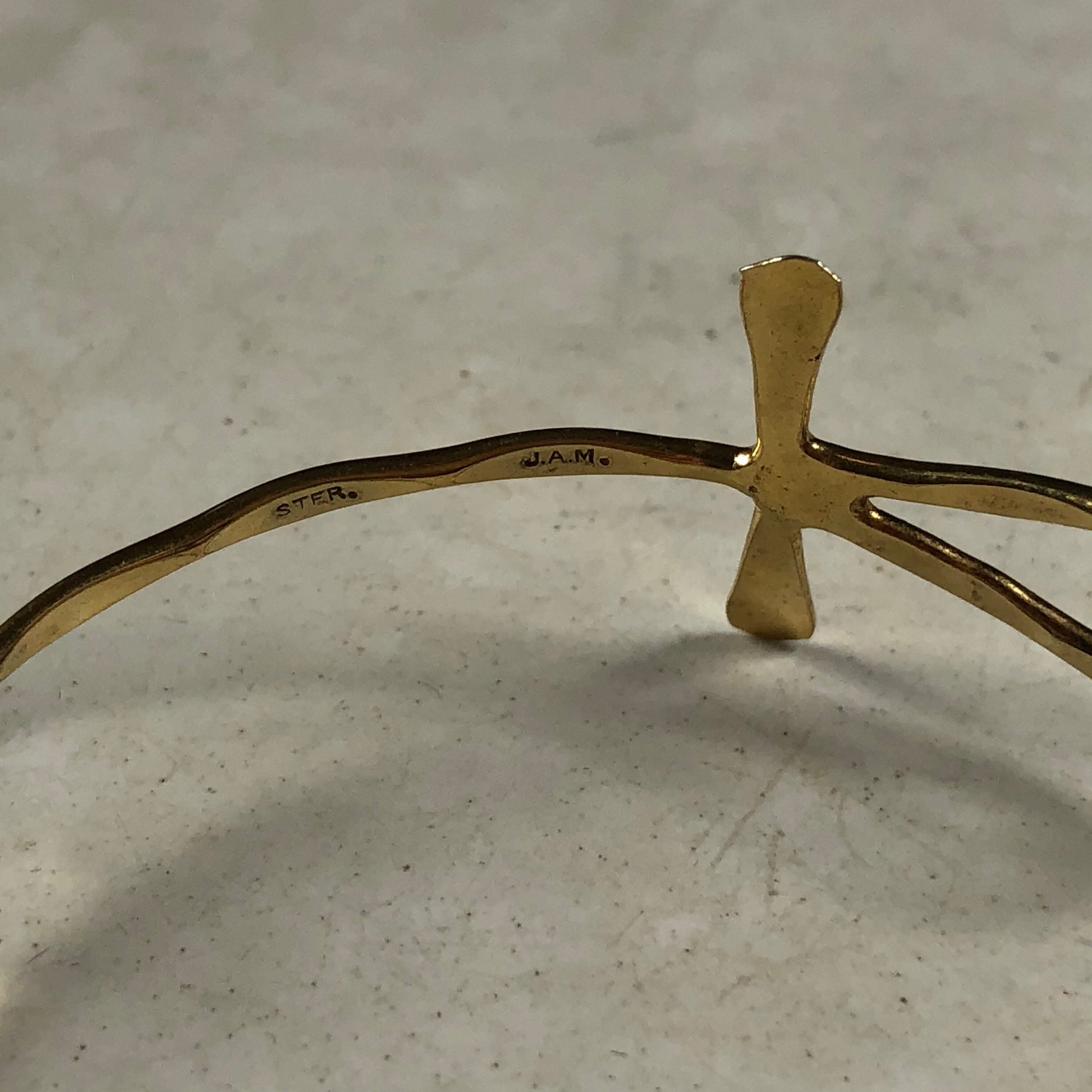 Vintage Sterling Silver Gold Vermeil Ankh Bangle Bracelet