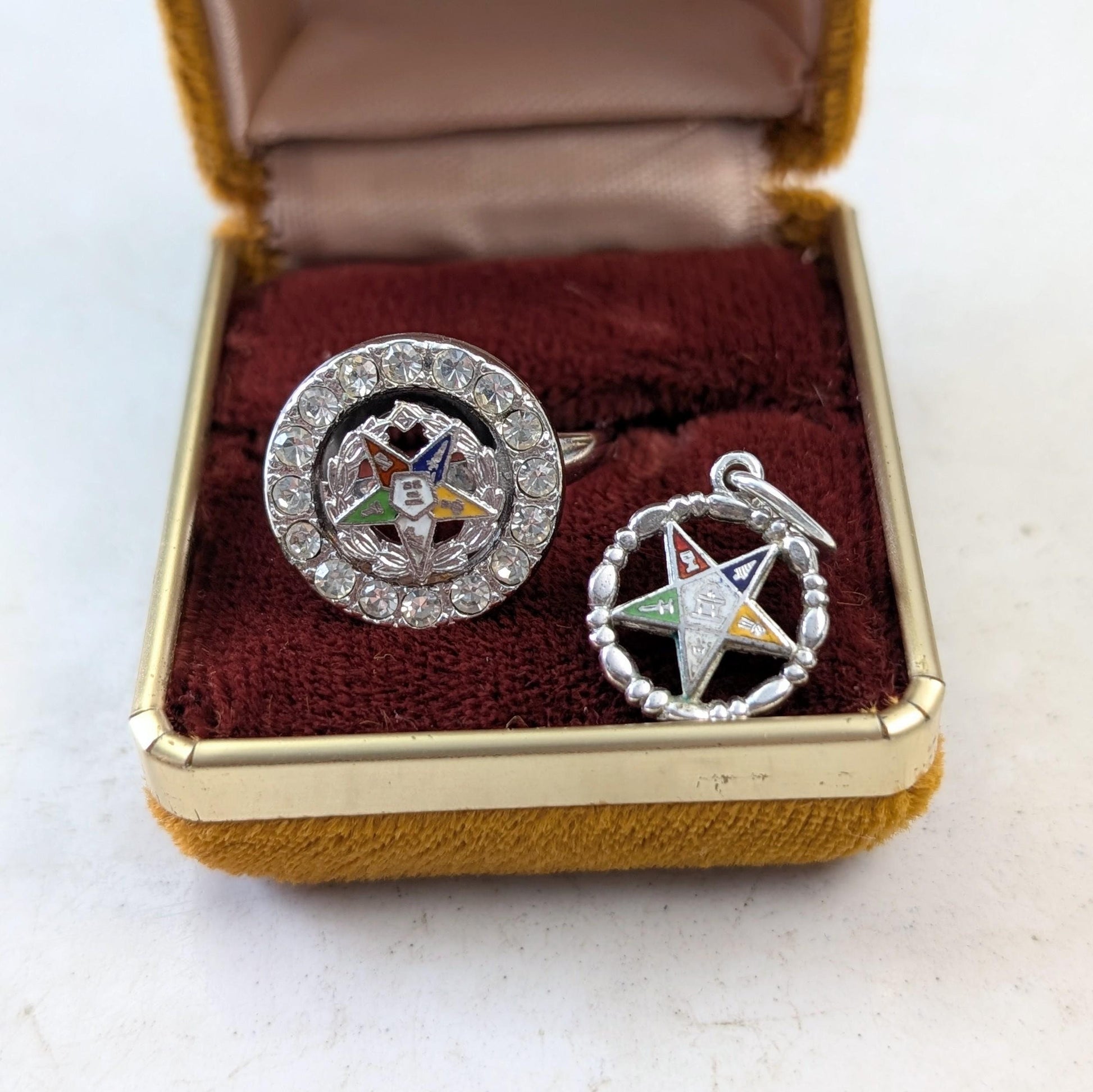 Vintage Sterling Silver Order of the Eastern Star Ring and Pendant Set
